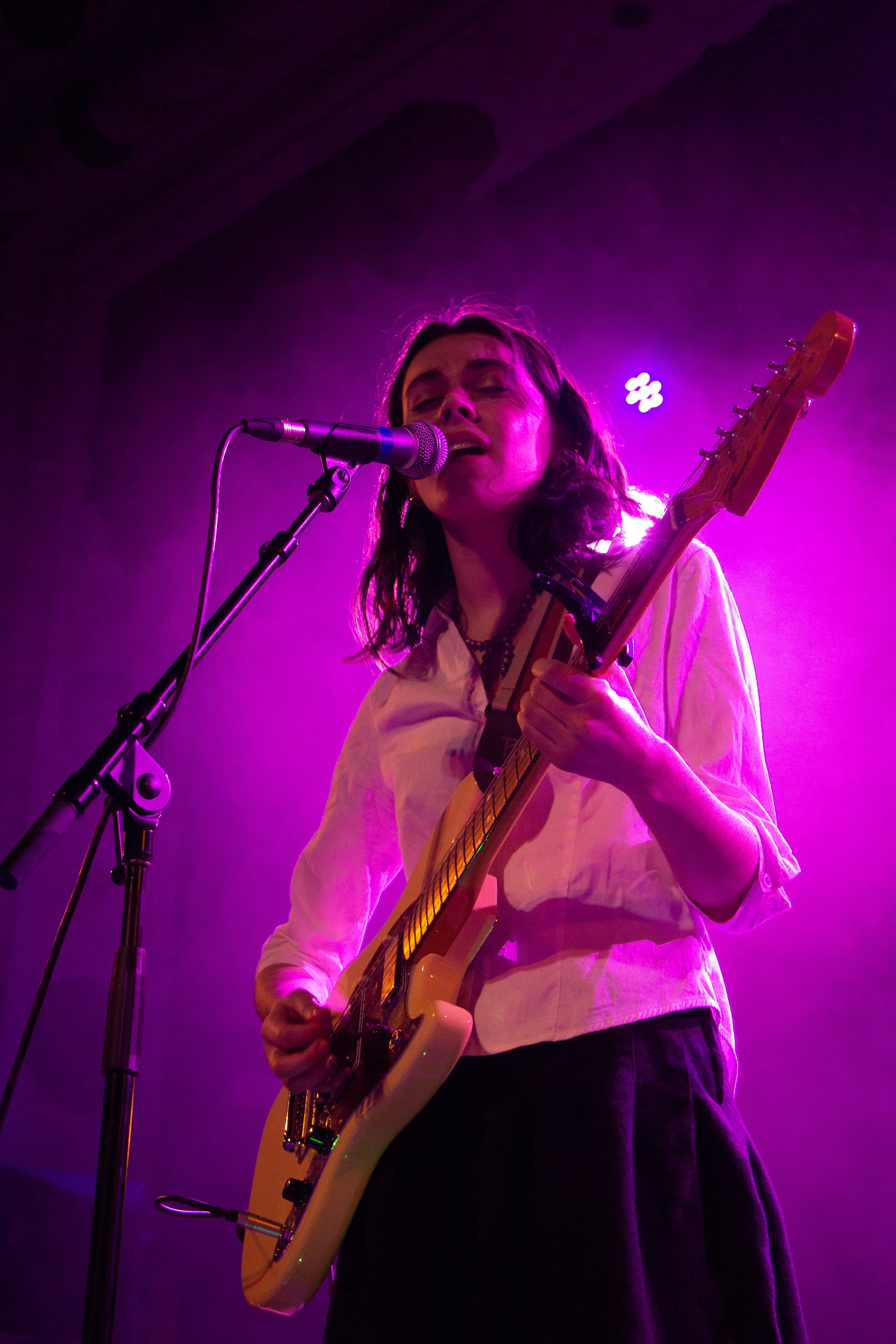 Once the main event of the night, The Japanese House, appeared on stage, the show reached an incredibly significant climax. Amber Bain (The Japanese House) began writing music under this moniker after being introduced to The 1975 frontman Matty Healy in 2012. Since then, her musicianship has been carefully defined as indie pop but falls down an enjoyable rabbit hole influenced by 80s synth-pop, hints of rock with a folk base and attractive yet sexless vocals.